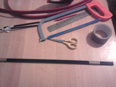 In consists in cutting the 2 rods at the good size (about 1m). In fact, the sword can't be longer than 1m10.